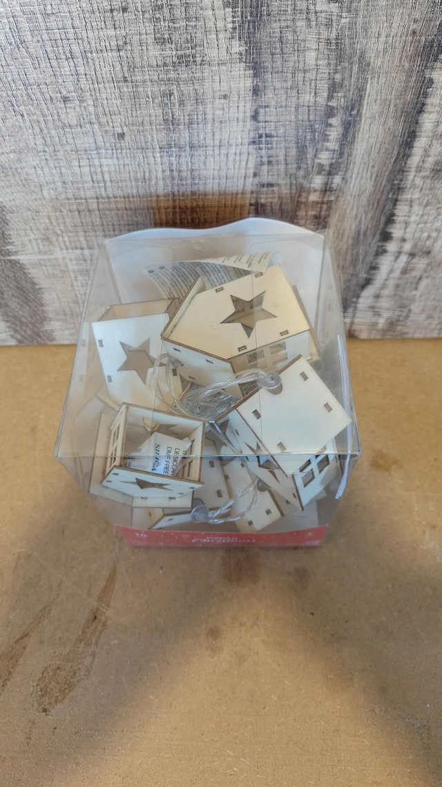 Lichterkette mit 10 LED'S und kleine Holzhäuser auf jedem LED